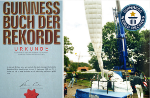 Klöfer先生告诉我,在2000年,公司百年庆典的时候,做过一条记入吉尼斯世界记录的世界上最大的羽绒被(百米不跑绒),之前一直被当作装饰摆放在公司。不过遗憾的是,前几年,这条羽绒被已经分为多份,赠与了公司的几大重要客户。现在只能通过照片一睹其风采了。