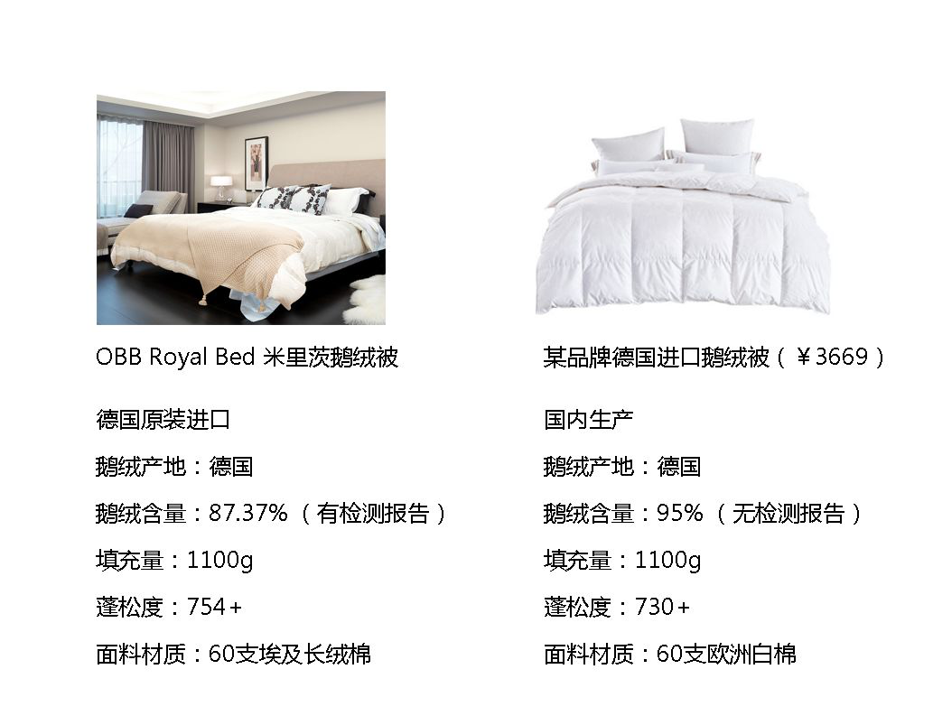 同比一下市场上的鹅绒被品,价格比OBB ROYAL BED高、品质却不如。