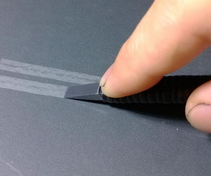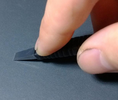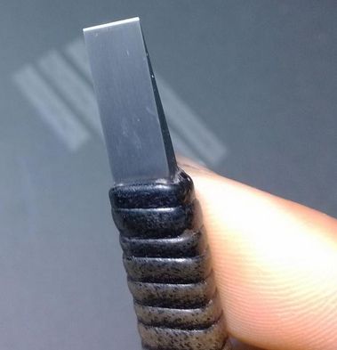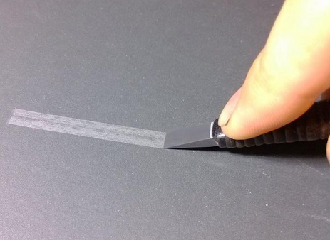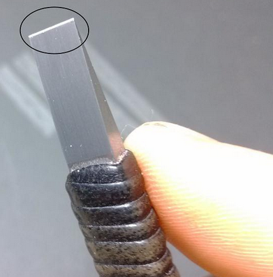 3、一排结束后,拿起刻刀换另一排,重复2步骤,如此反复三四下(如果是金刚石磨盘只需要一到两下),查看刀角,出现平整的刀刃线即可。