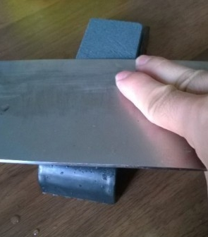 第三步:开始磨刀,在磨刀石和刀片上洒上水,将刀面紧紧贴在磨刀石上,后部略翘起后在推拉磨刀。磨刀时要用力均匀,等磨刀石表面起沙浆时再撒水,刀的两面和前后及中部要轮流均匀的磨到,只有这样才能保持刀刃平直,锋利,刀磨完后要用清水洗净,擦干。