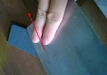 第四步:在磨刀的时候,我们要先磨内刀面,再磨外刀面。磨内刀面的时候,菜刀与磨刀石呈3°~5°角。来回磨刀时,保持此角度基本不变。再磨外刃面,使菜刀与磨刀石呈5°~8°角。来回磨刀时,保持此角度基本不变。这样反复的磨,直到刀刃线够细,刀刃上没有明显的缺口就可以了。