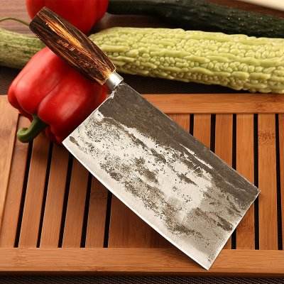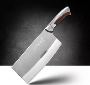 斩刀,即斩骨刀,顾名思义,用途为斩骨。斩刀比批刀更加厚重,开刃角度也大,为了保证不崩溃硬度不会太高,适合砍骨头和硬物,不求锋利但求坚固。不过重刀无锋,切忌砍手!挑选时要选结实的刀柄类型,刀柄一旦松动决不可再使用。