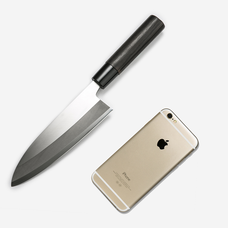 每一把厨刀都经过匠人手工研磨开刃,角度是15度,刃的前部分是15度,刃的前部分是两段,一段是15-20度过度的“小刃止”;另一段是最前端,刀幅0.02-0.2mm的“刃先”,角度为30-35度,这个巧妙的角度变化使锋利度耐久性延长十倍。